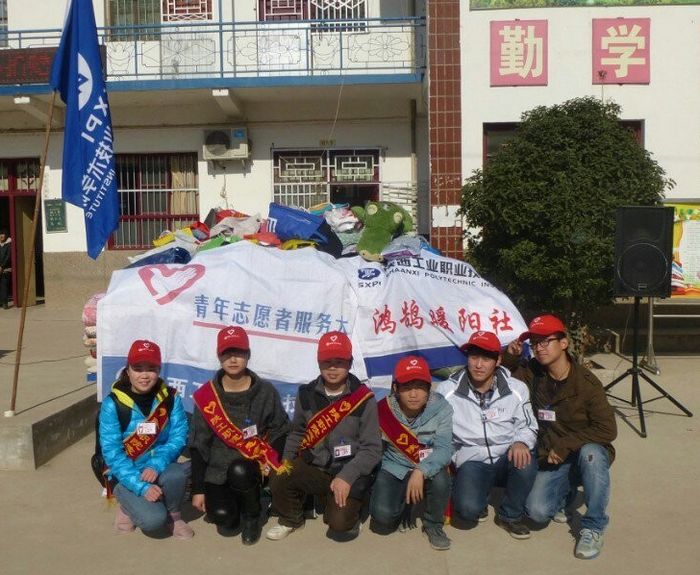 鴻鵠暖陽社志愿帶著冬衣來到周至新聯(lián)中學
