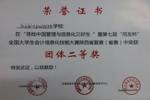 2013年11月2日至3日,由工業(yè)和信息化部人才交流中心、用友新道科技有限公司聯(lián)合舉辦的“尋找中國管理與信息化三好生”暨第七屆“用友杯”全國大學(xué)生會計信息化技能大賽陜西省復(fù)賽(省賽)在延安職業(yè)技術(shù)學(xué)院舉辦,西安航空職業(yè)技術(shù)學(xué)院航空管理工程學(xué)院受邀參加。