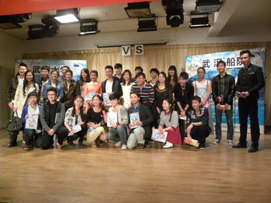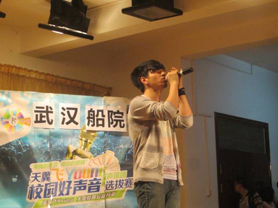 繼9月13日武漢船院郭志祥同學參加校園好聲音抽簽儀式后,“用我的聲音做你的眼睛”大型校園公益行動天翼飛YOUNG聲援團校際PK賽于10月23日晚7點在武漢船院大學生活動中心四樓隆重舉行。由武漢船院對陣武漢大學,最后武漢船院十強選手以微弱優(yōu)勢險勝武漢大學。