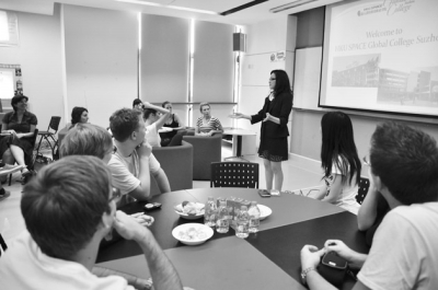 瑞士游學(xué)團(tuán)在體驗(yàn)港大思培學(xué)院的課堂教學(xué)。