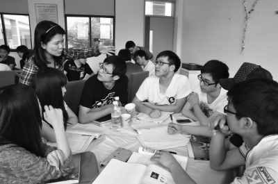 馬來(lái)西亞外教在“小島”式課堂上指導(dǎo)學(xué)生。