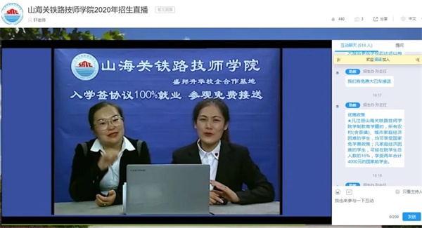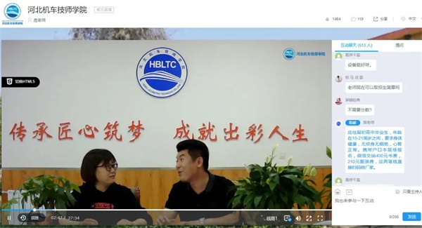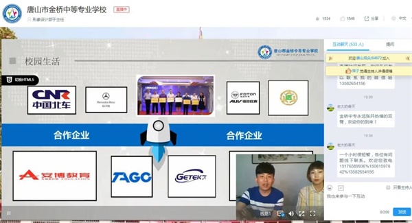 其中遷安職教中心直播間最為火熱,在直播期間訪問人數(shù)達到萬人;唐山勞動技師學院通過此次直播當天報名人數(shù)破百人。
