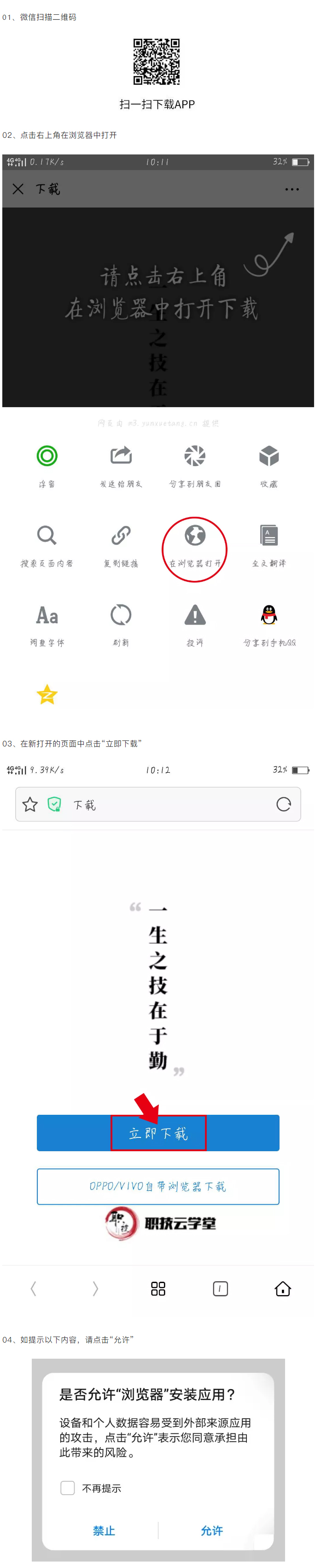 最近看到后臺(tái)有很多朋友留言,不知道如何下載職技云學(xué)堂APP,那今天就給大家?guī)硪黄螺d的操作教程,一步一步就可以下載啦!