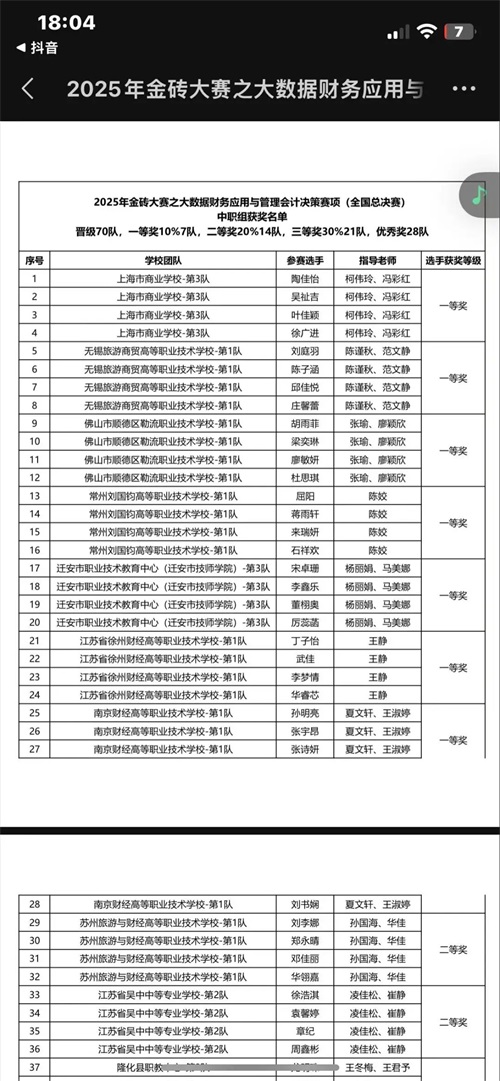 “這次獲獎是對我們備賽努力的最大肯定,也讓我深刻感受到‘數(shù)據(jù)賦能財務’的職業(yè)魅力?!眳①悓W生代表在賽后說道。信息工程系周偉主任表示,此次獲獎既是參賽師生辛勤付出的成果,更是學校踐行“以賽促教、以賽促學、以賽促改”育人理念的生動實踐。