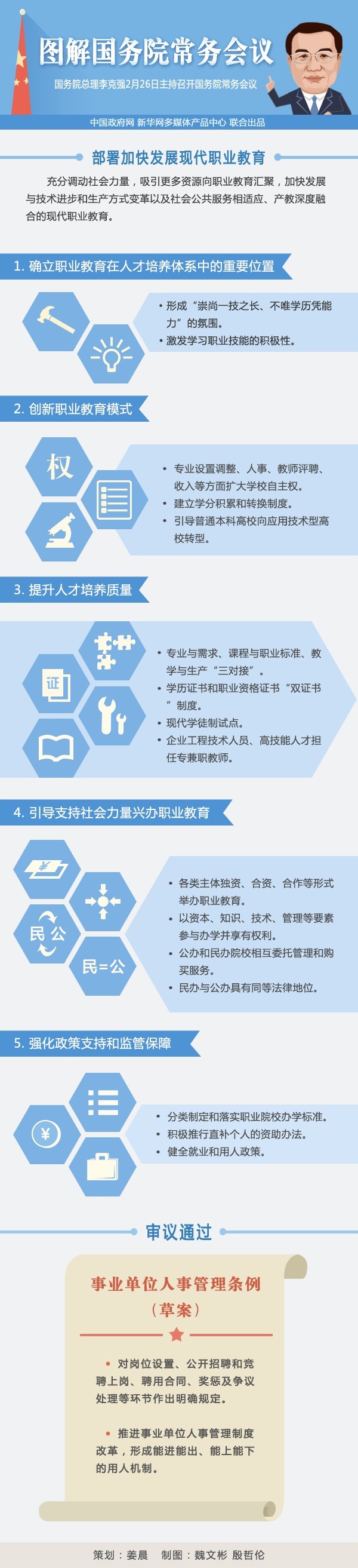 新華社北京2月26日電 國(guó)務(wù)院總理李克強(qiáng)2月26日主持召開(kāi)國(guó)務(wù)院常務(wù)會(huì)議,部署加快發(fā)展現(xiàn)代職業(yè)教育,審議通過(guò)《事業(yè)單位人事管理?xiàng)l例(草案)》。