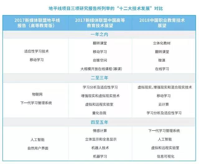 《2018中國(guó)職業(yè)教育技術(shù)展望:地平線項(xiàng)目報(bào)告》日前發(fā)布。該報(bào)告的目的在于探究中國(guó)在教育技術(shù)方面的新興發(fā)展趨勢(shì),并針對(duì)中國(guó)職業(yè)教育的具體情況,預(yù)測(cè)其潛在影響。