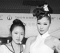 張精是個(gè)熱愛形象設(shè)計(jì)的女生,憑借嫻熟的技藝和手法,今年24歲的她曾分別獲得2011年全國職業(yè)院校技能大賽(以下簡稱“國賽”)晚宴化妝發(fā)型設(shè)計(jì)造型,和2012年國賽新娘化妝盤發(fā)造型一等獎(jiǎng),是名副其實(shí)的“雙料王”冠軍。