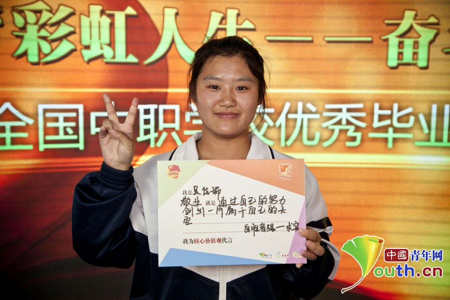 北京市求實職業(yè)學(xué)校學(xué)生吳佳瑞寫下自己的“價值觀體”。