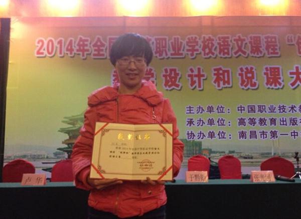 喜訊:2014全國中等職業(yè)學(xué)校大賽、唐山市第一職業(yè)中專教師榮獲第一,唐山市第一職業(yè)中專張盈老師代表唐山市中等職業(yè)學(xué)校參加了11月15日-17日在江西南昌舉辦的“2014全國中等職業(yè)學(xué)校語文課程創(chuàng)新杯教師信息化教學(xué)設(shè)計和說課大賽”,以其富有創(chuàng)新特色的教學(xué)設(shè)計和精彩的說課展示獲得了一等獎的優(yōu)異成績。