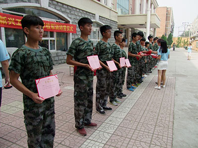 白麗校長在教官的陪同下依次檢閱了各個(gè)受訓(xùn)方陣。接著軍訓(xùn)成果匯報(bào)表演開始,整齊的步伐、劃一的動(dòng)作、昂揚(yáng)的斗志、嘹亮的口號(hào)充分展現(xiàn)了新興學(xué)子規(guī)范的舉止、嚴(yán)明的紀(jì)律和良好的精神風(fēng)貌,展示了同學(xué)們刻苦拼搏的軍訓(xùn)成果。匯報(bào)表演博得了在場領(lǐng)導(dǎo)、教官、教師的陣陣掌聲,贏得了大家的一致好評。隨后校領(lǐng)導(dǎo)們分別向獲得各項(xiàng)榮譽(yù)及優(yōu)秀方隊(duì)與優(yōu)秀個(gè)人頒發(fā)獎(jiǎng)狀。同學(xué)代表發(fā)言,表達(dá)了對教官和老師們得感謝并表示在今后的學(xué)習(xí)生活中謹(jǐn)記教官的教導(dǎo),用頑強(qiáng)的意志克服學(xué)習(xí)道路上的一切困難。田小霞副校長代表學(xué)校為軍訓(xùn)閉營儀式總結(jié)發(fā)言。他感謝了參訓(xùn)教官和班主任的辛勤付出,同時(shí)對同學(xué)們圓滿完成軍訓(xùn)任務(wù)表示祝賀并希望全體同學(xué)以軍訓(xùn)作為起點(diǎn),過一個(gè)有意義的技校生活。白麗校長并向培訓(xùn)基地贈(zèng)送錦旗。