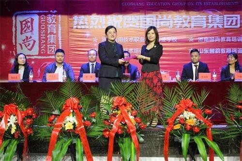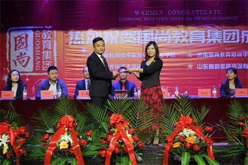 首先,國尚教育集團(tuán)董事長郭謙為集團(tuán)新任領(lǐng)導(dǎo)頒發(fā)了聘書并為慶典致辭。