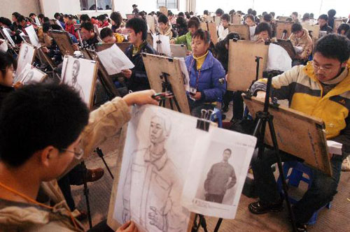 素描(100分):考試時間180分鐘。人物頭像、石膏像、靜物等寫生或默寫、