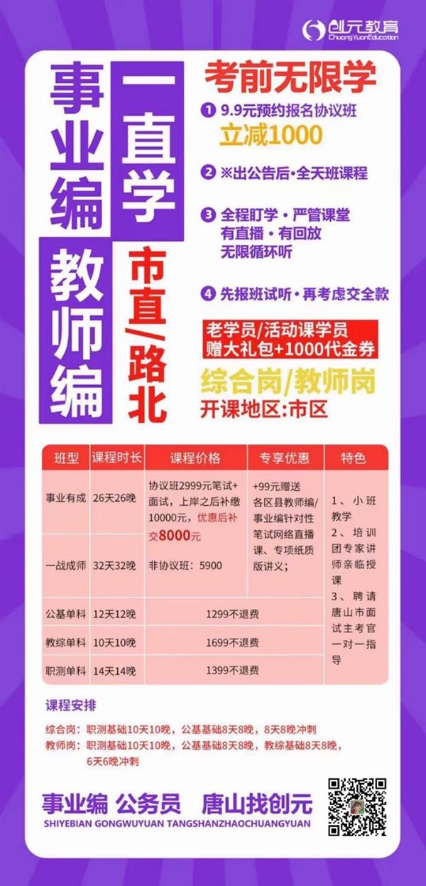 唐山創(chuàng)元教育教資面試班怎么樣?2022上半年教資面試時(shí)間已經(jīng)公布了,今年的教資面試班的時(shí)間為:5月14——15日,各位考生都準(zhǔn)備好了嗎?近日,唐山創(chuàng)