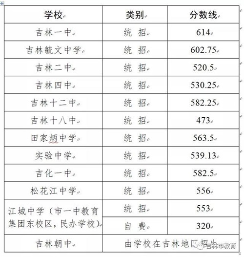 2020年吉林市中考城區(qū)高中錄取分?jǐn)?shù)線發(fā)布 說明 一、重點高中最低錄取控制分?jǐn)?shù)線為450分,一般高中最低錄取控制分?jǐn)?shù)線為320分。 二、中高職貫通培養(yǎng)、