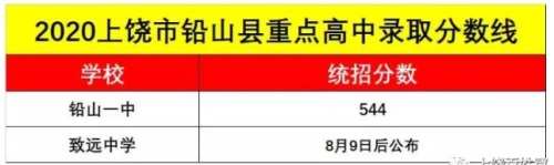 2020年江西上饒中考鉛山縣重點高中錄取分?jǐn)?shù)線