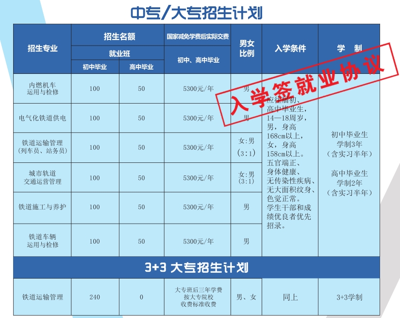 2023 招生簡章 石家莊路翔鐵路中等專業(yè)學(xué)校 統(tǒng)招代碼:6144 全日制中等專業(yè)學(xué)校 生態(tài)園林式校園,現(xiàn)代化教學(xué)設(shè)備 半軍事化管理,3+3特色教學(xué),升學(xué)就業(yè)兩不誤 享受國家獎學(xué)金、助學(xué)金、減免學(xué)費 一、石家莊路翔鐵路中等專業(yè)學(xué)校介紹 石家莊路翔鐵路中等專業(yè)學(xué)校是經(jīng)河北省教育廳、石家莊市教育局批準(zhǔn)成立的一所全日制中等專業(yè)學(xué)校,建校十八年以來,學(xué)校一直秉持“德技并修,育訓(xùn)結(jié)合”教育理念,為社會培養(yǎng)輸送了大批的技能型人才,得到用人單位的一致認(rèn)可和好評。 為適應(yīng)新時期職業(yè)教育發(fā)展,學(xué)?,F(xiàn)設(shè)制全日制統(tǒng)招升學(xué)班,分四大專業(yè)類別共六個專業(yè);設(shè)制優(yōu)質(zhì)就業(yè)班,分兩大專業(yè)類..