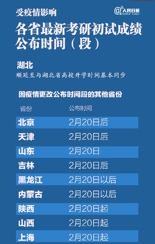 受疫情影響,湖北省教育考試院日前發(fā)布通知稱,考研初試成績公布將與湖北省高校開學(xué)日期同步。截至目前,全國#多省推遲考研成績公布時(shí)間#,具體以各省研究生招生網(wǎng)為準(zhǔn)。
